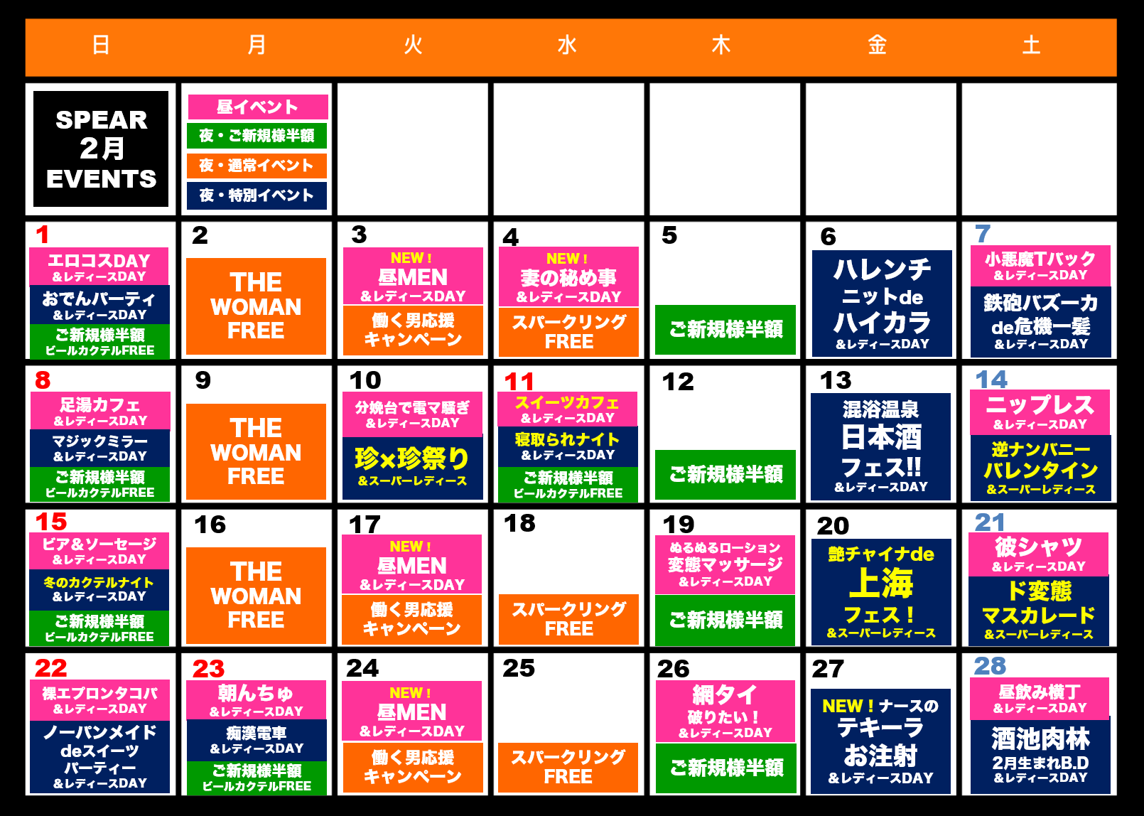 ◆月曜日 NEW!THE WOMAN FREE実施日時